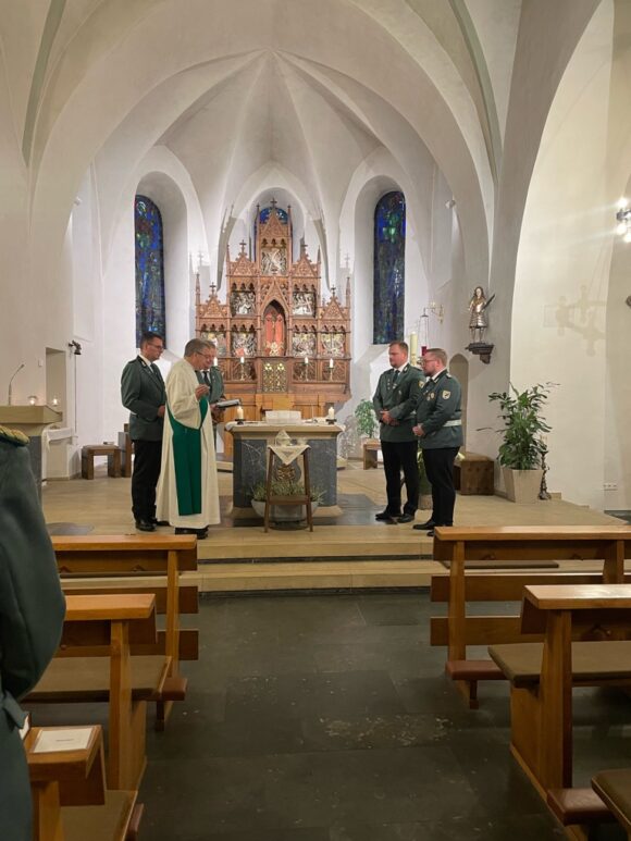 Am 9. November feierte unsere Schützenbruderschaft ihr diesjähriges Patronatsfest zu Ehren des heiligen Hubertus. Der Tag begann traditionell mit einem feierlichen Wortgottesdienst, den Diakon Josef Levermann leitete. In seiner Predigt ging er auf die Weihe der Lateranbasilika in Rom ein und erinnerte daran, dass Kirchengebäude zwar sichtbare Orte des Glaubens sind, der eigentliche Bau der Kirche Gottes jedoch aus uns allen besteht. Jeder und jede Einzelne ist ein lebendiger Baustein der Gemeinschaft.